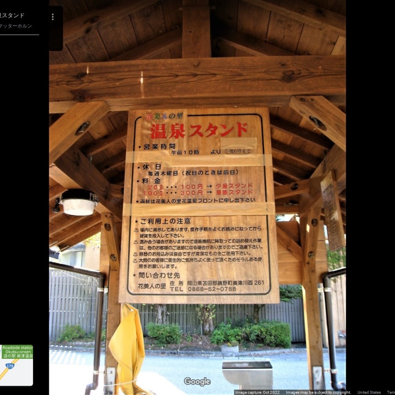 | [言い伝え・概要] | 美作三湯「奥津温泉」を汲んで帰れる温泉スタンド。