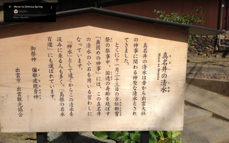 | [言い伝え・概要] | 出雲大社の宮司である出雲国造が奉仕する祭事の中で、最も重要な祭事の一つである「古伝新嘗祭」で利用されている。
