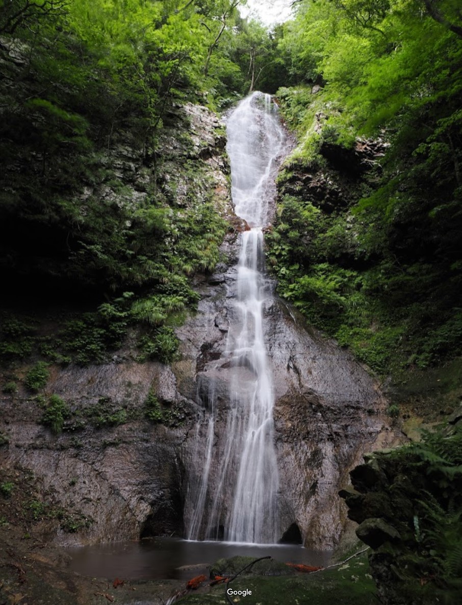 | [言い伝え・概要] | 那久川の上流で、屏風を連ねたような岩壁の左右に高さ50mの雄滝と40mの雌滝がある。