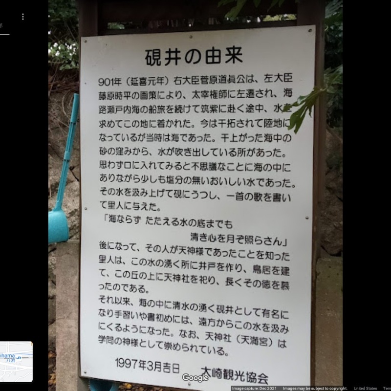【硯井の井戸】(岡山県の湧水)玉野市八浜町 左遷中の菅原道真が硯の水に使って歌を詠んだ記念の地 [湧水の名称] 硯井の井戸(すずりいのいど) [場所] 岡山県玉野市八浜町 [言い伝え・概要] 菅原道真が、硯の水を海辺から取ったという伝説の湧水。 現在も、水を取った後には、井げたを作り残っている。 [保全活動] [Google クチコミ] こちら 出典 環境省ホームページ お気に入りに追加※自然の湧水は煮沸して飲用されるとより安全です。※水辺は水難や危険生物に十分気を付けてください。 Click to share on X (新しいウィンドウで開きます) X このエントリーをLINEで送る (新しいウィンドウで開きます) LINEに送る Facebook で共有するにはクリックしてください (新しいウィンドウで開きます) Facebook このエントリーをはてなブックマークに追加 (新しいウィンドウで開きます) はてなブックマーク (人物)菅原道真 岡山県 | 中国 | 玉野市 投稿日: 2021年3月15日2023年6月20日 投稿者: Sumai事務局