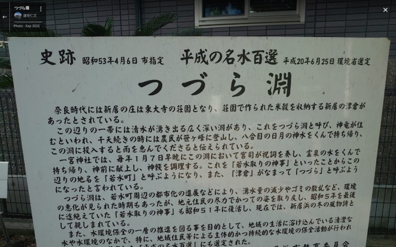 【つづら淵】(愛媛県の湧水)(平成の名水百選)新居浜市若水町 町名の由来となった新年の「若水取りの神事」風物詩で知られる神聖な湧水 [湧水の名称] つづら淵(つづらぶち) [場所] 新居浜市若水町2丁目5 [言い伝え・概要] この辺り一帯の広く深い淵から清水が湧き出ていて、つづら淵と呼ばれている。 一宮神社では、毎年1月7日早暁に宮司がつづら淵の霊水を持ち帰り神前に献上し若水取りの神事を行っており、地名の若水町の由来となっている。 2020年、憩いの場として施設が拡張整備された。 [保全活動] 付近住民により、保全活動が実施されている。 [Google クチコミ] こちら お気に入りに追加※自然の湧水は煮沸して飲用されるとより安全です。※水辺は水難や危険生物に十分気を付けてください。 Click to share on X (新しいウィンドウで開きます) X このエントリーをLINEで送る (新しいウィンドウで開きます) LINEに送る Facebook で共有するにはクリックしてください (新しいウィンドウで開きます) Facebook このエントリーをはてなブックマークに追加 (新しいウィンドウで開きます) はてなブックマーク (種類)若水 | (名水・名勝)平成の名水百選 愛媛県 | 四国 | 新居浜市 投稿日: 2021年3月15日2022年11月8日 投稿者: Sumai事務局
