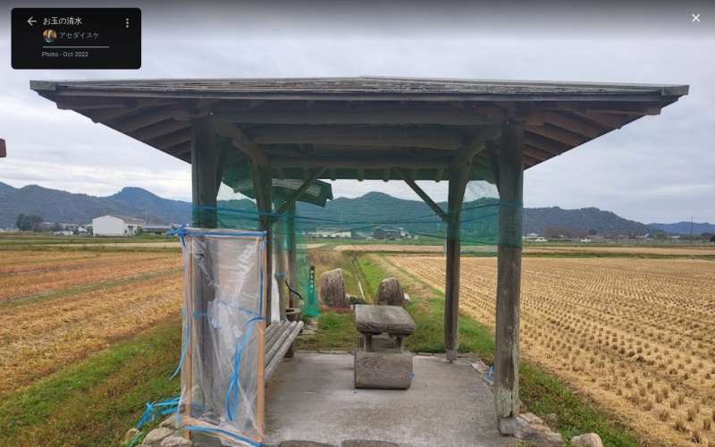 [言い伝え・概要] この清水の東方に因幡街道が通っており、澄んだ冷たい清水は、昔から歩いて旅した人たちののどの渇きを潤し、「玉露」の味わいだったことからお玉の清水と名付けられたと言われている。