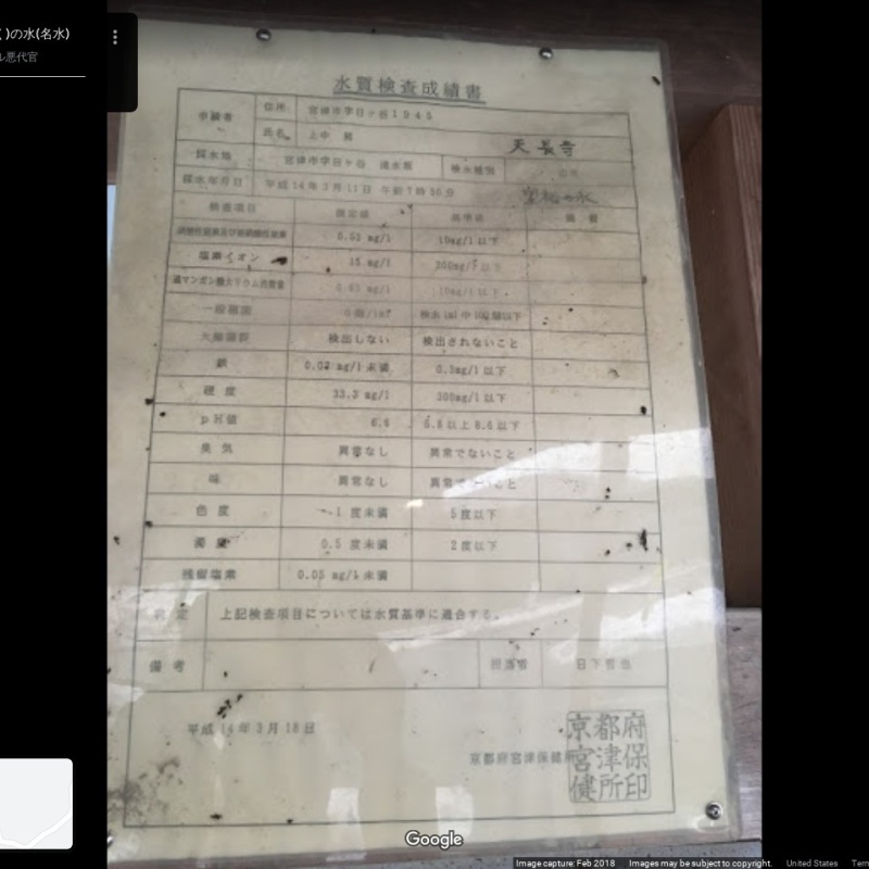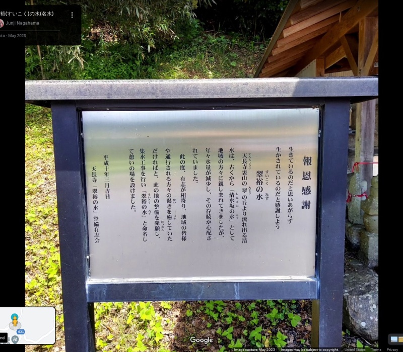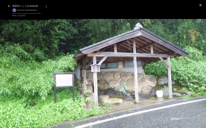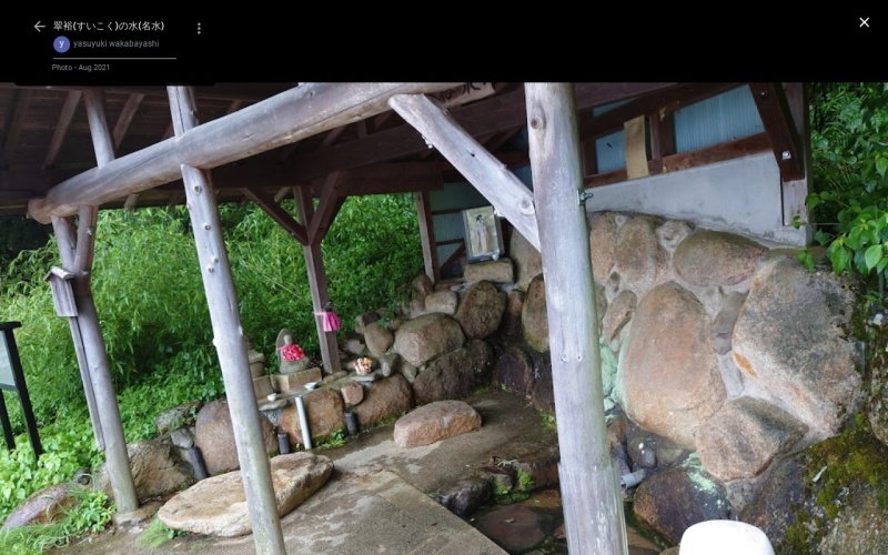 【翠裕の水】(京都府の湧水)宮津市日ケ谷 天長寺裏山から流れる 清らかな軟水 [湧水の名称] 翠裕の水(すいこくのみず) [場所] 京都府宮津市日ケ谷 [言い伝え・概要] 天長寺裏山から流れる清水。 古くから「清水坂の水」として親しまれてきたが、水量が減少したことから、近年、地元有志により集水工事を行い、新たに「翠裕の水」と名づけ、憩いの場として整備したもの。 [保全活動] 水場周辺の清掃など [Google クチコミ] こちら 出典 環境省ホームページ お気に入りに追加※自然の湧水は煮沸して飲用されるとより安全です。※水辺は水難や危険生物に十分気を付けてください。 Click to share on X (新しいウィンドウで開きます) X このエントリーをLINEで送る (新しいウィンドウで開きます) LINEに送る Facebook で共有するにはクリックしてください (新しいウィンドウで開きます) Facebook このエントリーをはてなブックマークに追加 (新しいウィンドウで開きます) はてなブックマーク (種類)軟水 近畿 | 京都府 | 宮津市 投稿日: 2021年3月16日2023年6月21日 投稿者: Sumai事務局