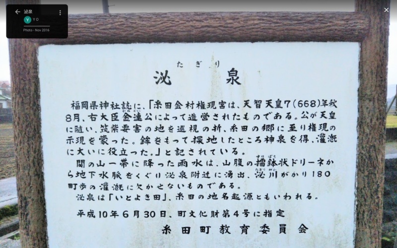 | [言い伝え・概要] | 豊日別命や神功皇后にまつわる伝説も残っている泉。