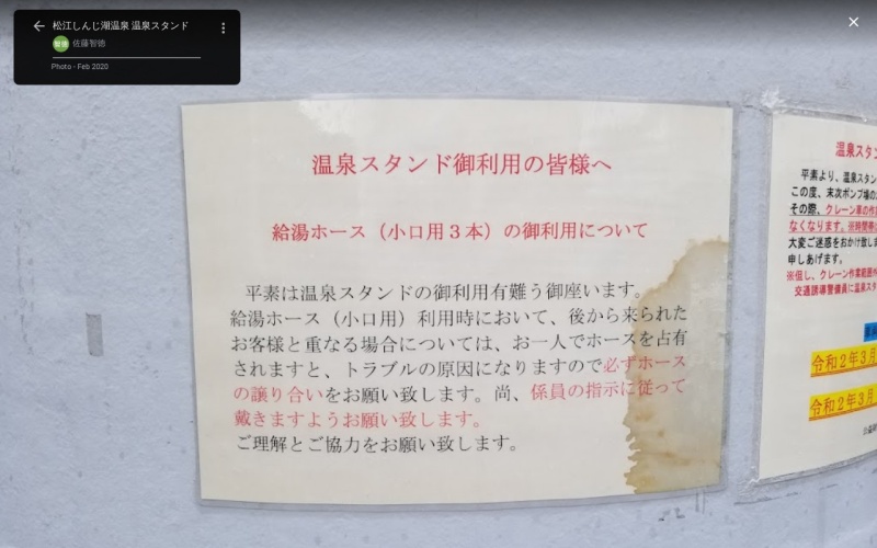 | [名称] | 松江しんじ湖温泉 温泉スタンド | ||||||