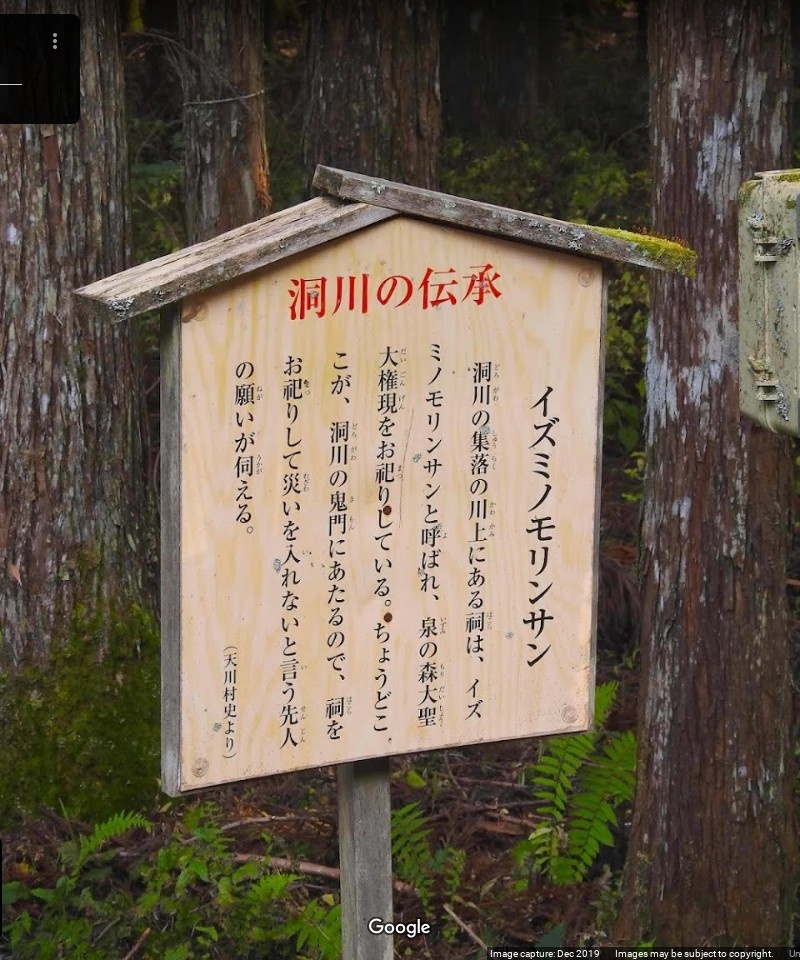 | [言い伝え・概要] | 洞川地区の鬼門を守る神社の中にあり、大切に保全されている。