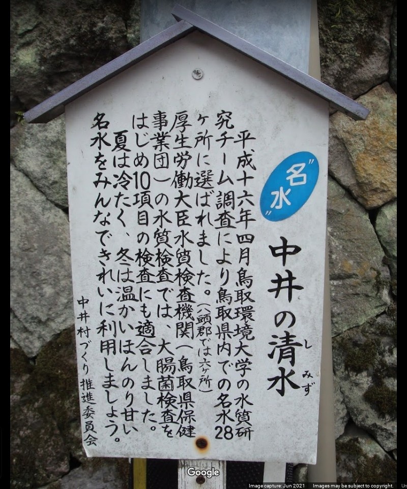 【中井の清水】(鳥取県の湧水)鳥取市河原町中井 ほんのり甘く夏冷たく冬暖かい 鳥取県の名水28選