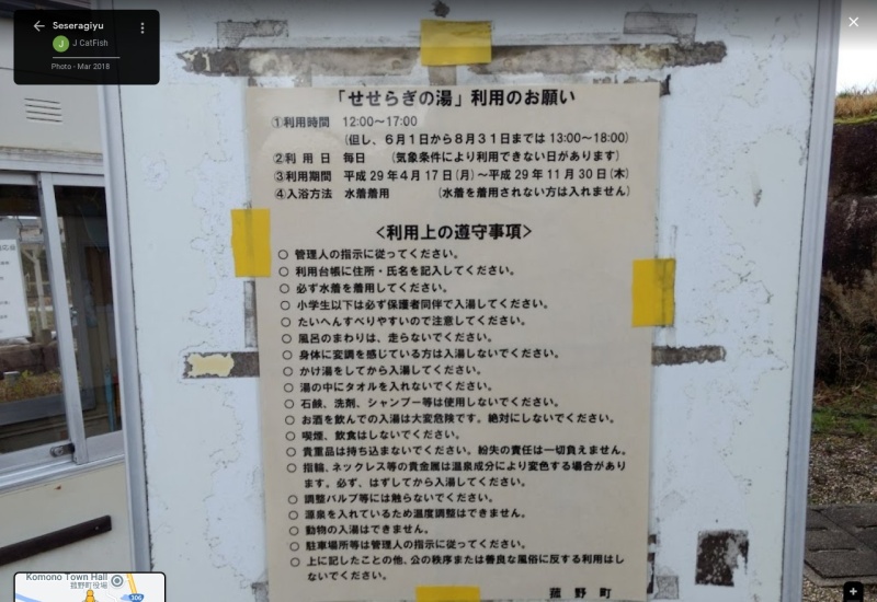 【せせらぎ湯】(三重県の水場)三重郡菰野町菰野 低中高温・三つの浴槽がある 源泉掛け流しの無料混浴露天風呂 [名称] せせらぎ湯 [場所] 三重県三重郡菰野町菰野1847−37 [言い伝え・概要] 三滝川沿いの川原にある、源泉掛け流しの無料混浴露天風呂。 駐車場も無料で、38度、40度、42度の三つの浴槽がある。 男女別のプレハブ更衣室が設置されている。 水着着用の必要有。 利用時間 12:00~17:00(6月1日~8月31日は13:00~18:00) [保全活動] [Google クチコミ] こちら お気に入りに追加※自然の湧水は煮沸して飲用されるとより安全です。※水辺は水難や危険生物に十分気を付けてください。 Click to share on X (新しいウィンドウで開きます) X このエントリーをLINEで送る (新しいウィンドウで開きます) LINEに送る Facebook で共有するにはクリックしてください (新しいウィンドウで開きます) Facebook このエントリーをはてなブックマークに追加 (新しいウィンドウで開きます) はてなブックマーク (場所)露天風呂 三重県 | 三重郡 | 菰野町 投稿日: 2023年7月6日2023年7月6日 投稿者: Sumai事務局