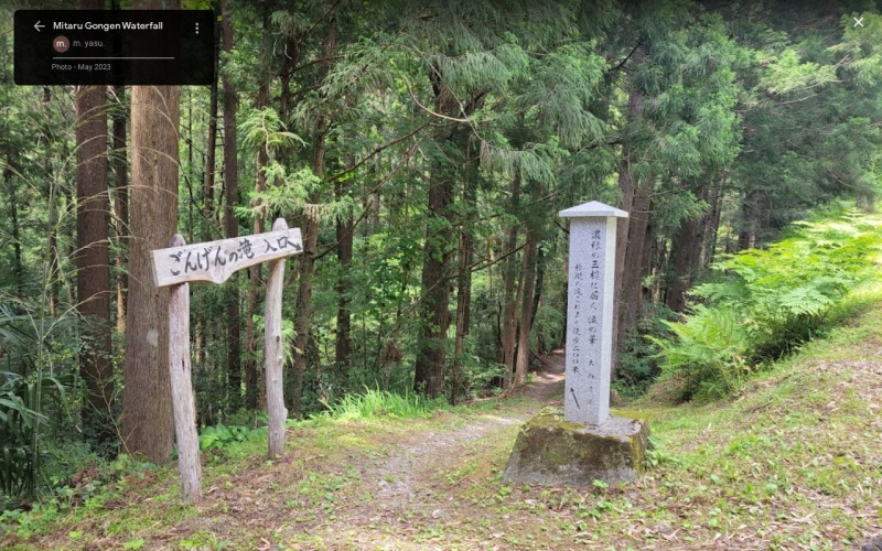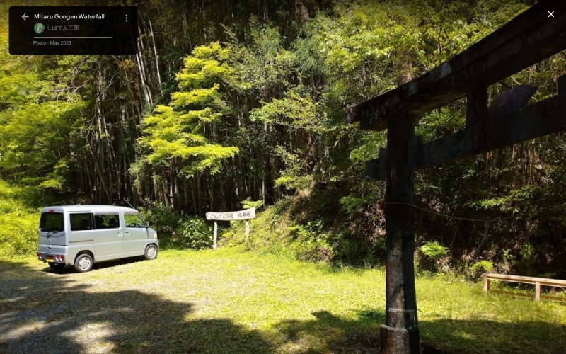 滝の少し手前の鳥居付近に数台止められる駐車場がある。