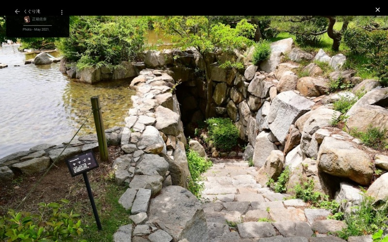 [言い伝え・概要] 幅五十メートル、落差三メートルで、滝にはトンネルが設けられており、石橋で池を渡り、滝をくぐってトンネルの暗闇の神秘的な空間をぬけ、どだま獅子や瀬戸大橋を望む明るい空間に躍り出る散策路は、爽やかな驚きをうまく演出しています。