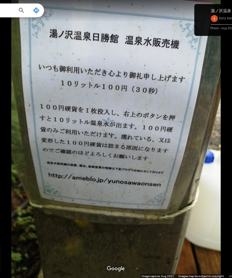[名称] 湯ノ沢温泉 温泉水 水汲み場