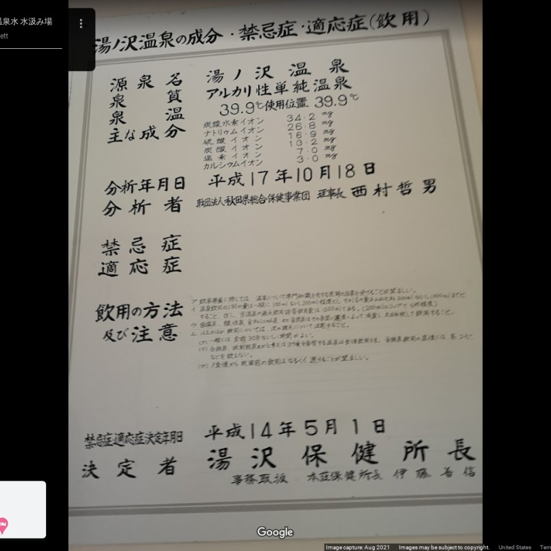 【湯ノ沢温泉 温泉水 水汲み場】(秋田県の水汲み場)湯沢市下院内湯ノ沢 清流沿いの山道の行き止まりにある 人里離れた温泉スタンド