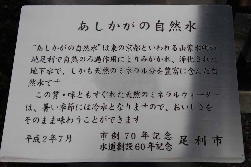 【あしかがの自然水】(栃木県の水飲み場)足利市大門通 足利尊氏像の傍らで飲める 天然ミネラルを豊富に含んだ冷たいミネラルウォーター [名称] あしかがの自然水 [場所] 栃木県足利市大門通2376 [言い伝え・概要] 足利市の水道は、すべての水源を地下水でまかなっており、浄水場内の取水井や集水埋きょから地下水をくみ上げている。 自然のろか作用で浄化された地下水は、天然のミネラル成分を豊富に含んだ自然水となって、暑い季節には冷水のミネラルウォーターとして美味しく味わえる。 [保全活動] [Google クチコミ] こちら お気に入りに追加※自然の湧水は煮沸して飲用されるとより安全です。※水辺は水難や危険生物に十分気を付けてください。 Click to share on X (新しいウィンドウで開きます) X このエントリーをLINEで送る (新しいウィンドウで開きます) LINEに送る Facebook で共有するにはクリックしてください (新しいウィンドウで開きます) Facebook このエントリーをはてなブックマークに追加 (新しいウィンドウで開きます) はてなブックマーク (人物)足利尊氏 関東 | 栃木県 | 足利市 投稿日: 2023年9月3日 投稿者: Sumai事務局