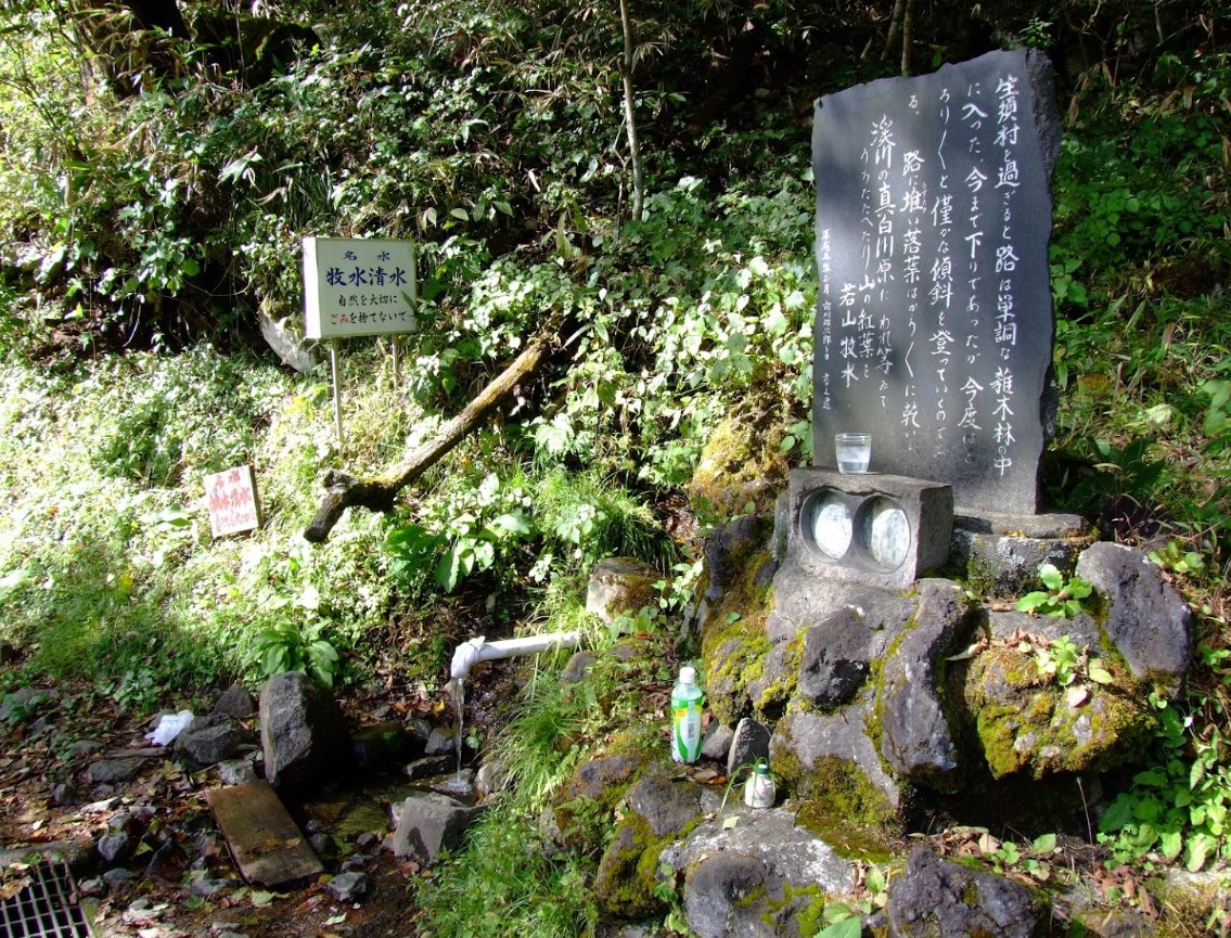 【牧水清水】(群馬県の湧水)吾妻郡中之条町 暮坂峠の道中 若山牧水の歌碑の傍らで湧き出る清水 [名称] 牧水清水(ぼくすいしみず) [場所] 群馬県吾妻郡中之条町 [言い伝え・概要] 若山牧水の歌碑が点在する暮坂峠中之条草津線(県道55号線)沿いにある湧水で、傍らに歌碑が設置されている。 溪川の真白川原にわれ等ゐてうちたたえたり山の紅葉を 【歌の背景】 大正11年秋、同地を訪れた折の歌をもとに建立。第14歌集『山桜の歌』所収。 「みなかみ紀行」の一節が添えられている。 [保全活動] [Google クチコミ] こちら 出典 若山牧水記念文学館 お気に入りに追加※自然の湧水は煮沸して飲用されるとより安全です。※水辺は水難や危険生物に十分気を付けてください。 Click to share on X (新しいウィンドウで開きます) X このエントリーをLINEで送る (新しいウィンドウで開きます) LINEに送る Facebook で共有するにはクリックしてください (新しいウィンドウで開きます) Facebook このエントリーをはてなブックマークに追加 (新しいウィンドウで開きます) はてなブックマーク (人物)若山牧水 中之条町 | 関東 | 群馬県 | 吾妻郡 投稿日: 2023年9月8日 投稿者: Sumai事務局