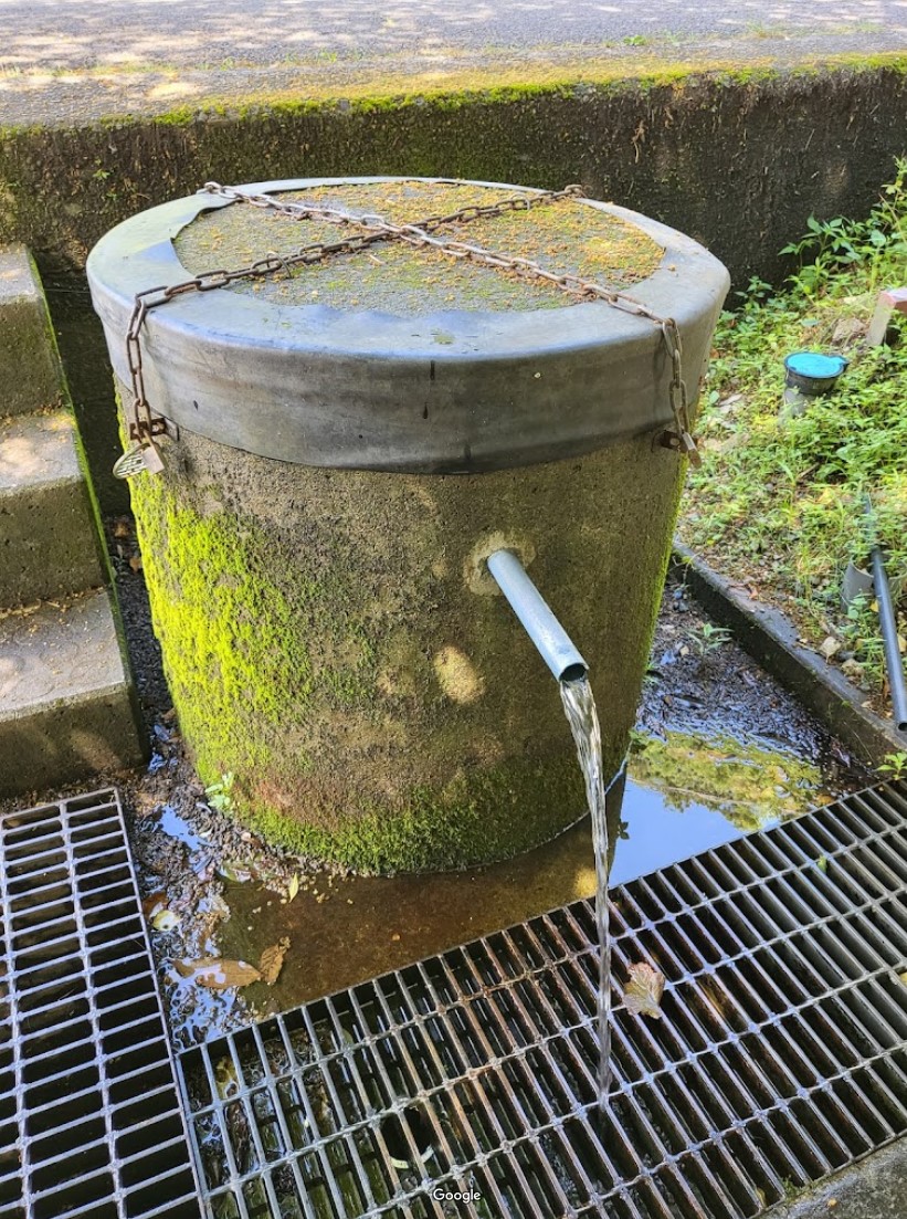 【富士山下の湧水】(茨城県の湧水)常陸太田市上深荻町 集落が維持管理する給水施設 愛宕神社境内地から湧き出る天然の軟水