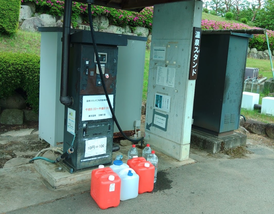 【黒羽温泉五峰の湯温泉スタンド】(栃木県の水汲み場)大田原市堀之内 露天風呂・直売所・レストラン等複合施設にある 無色透明の美人の湯 10リットル10円