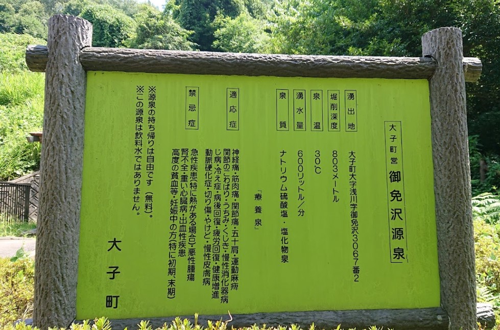 源泉名 御免沢源泉 泉質 ナトリウム硫酸塩・塩化物泉 泉温 30℃ 適応症 神経痛・筋肉痛・五十型・運動麻痺・関節のこわばり・うちみ・くじき・慢性消化器病・痔病・冷え性・病後回復・疲労回復・健康増進・動脈硬化症・切り傷・やけど・慢性皮膚病 料金 無料 駐車場 あり 浴用専用(飲用不可) |
