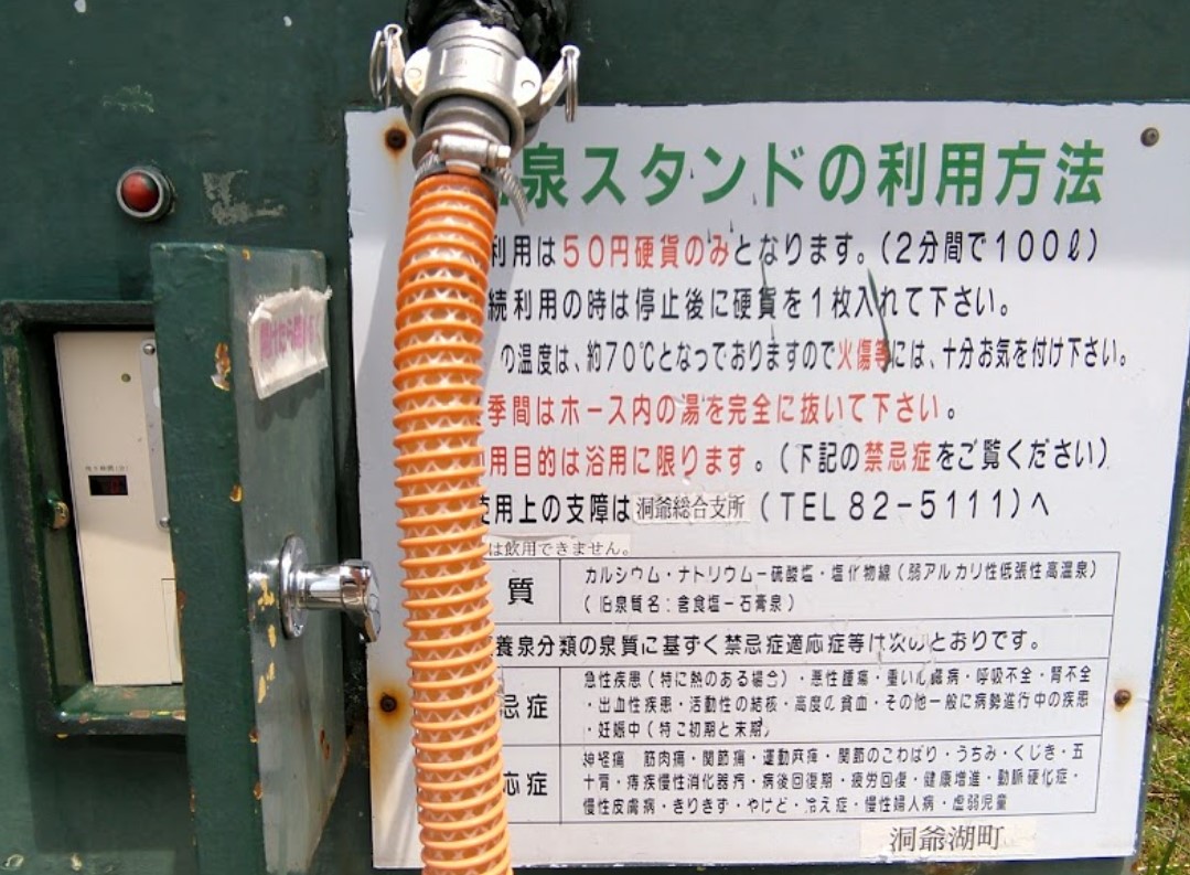 【洞爺湖温泉スタンド】(北海道の水汲み場)虻田郡洞爺湖町洞爺町 北海道では珍しい 70℃の高温温泉スタンド 100リットル50円
