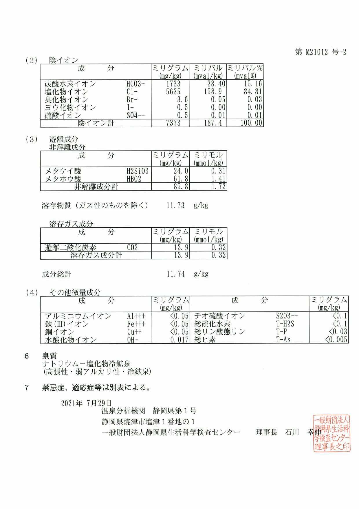 営利目的の利用は不可。 給湯量は、1日1人100リットル以内まで。 いつでも利用可。 利用料 無料 泉質 ナトリウム一塩化物冷鉱泉(高張性・弱アルカリ性・冷鉱泉) 泉質別適応症 きりきず、末梢循環障害、冷え性、うつ状態、皮膚乾燥症