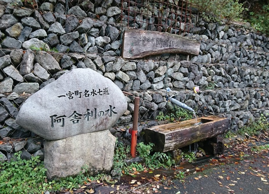 【阿舎利の水】(兵庫県の湧水)宍粟市一宮町河原田 渓流沿いの道脇にある 地元で大切にされる憩いの水