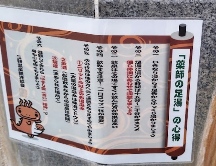 【薬師の湯】(鳥取県の水場)東伯郡三朝町三朝 温泉街の神様が祀られている広場にある 飲泉もできる無料足湯 [名称] 薬師の湯(やくしのゆ) [場所] 鳥取県東伯郡三朝町三朝933 [言い伝え・概要] 温泉の薬効がお祈りしてある温泉街の神様「お薬師さん」が祀られている広場にある。 健康祈願に訪れる人も多いという。 利用時間:9:00~21:30 料金:無料 [保全活動] [Google クチコミ] こちら 出典 三朝温泉 お気に入りに追加※自然の湧水は煮沸して飲用されるとより安全です。※水辺は水難や危険生物に十分気を付けてください。 Click to share on X (新しいウィンドウで開きます) X このエントリーをLINEで送る (新しいウィンドウで開きます) LINEに送る Facebook で共有するにはクリックしてください (新しいウィンドウで開きます) Facebook このエントリーをはてなブックマークに追加 (新しいウィンドウで開きます) はてなブックマーク (場所)飲泉所 | (場所)足湯 鳥取県 | 三朝町 | 東伯郡 | 中国 投稿日: 2023年11月22日 投稿者: Sumai事務局