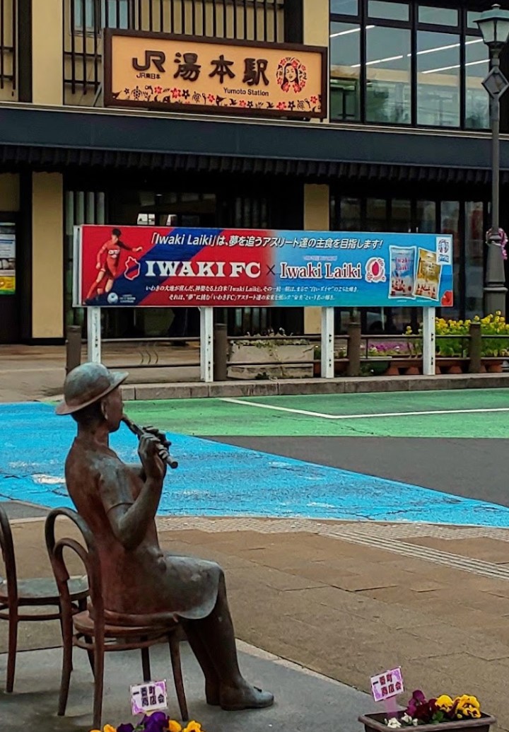 JR湯本駅前にある足湯で、駅前各所に設置されているブロンズ像のひとつ、フルートを吹く少女 <黒川晃彦氏>のそばにある。 泉質 硫酸塩温泉(流黄泉) 泉温 59.8℃(気温17℃) 適応症 慢性皮膚病、慢性婦人病、切り傷、糖尿病、火傷、動脈硬化症、虚弱児童 |