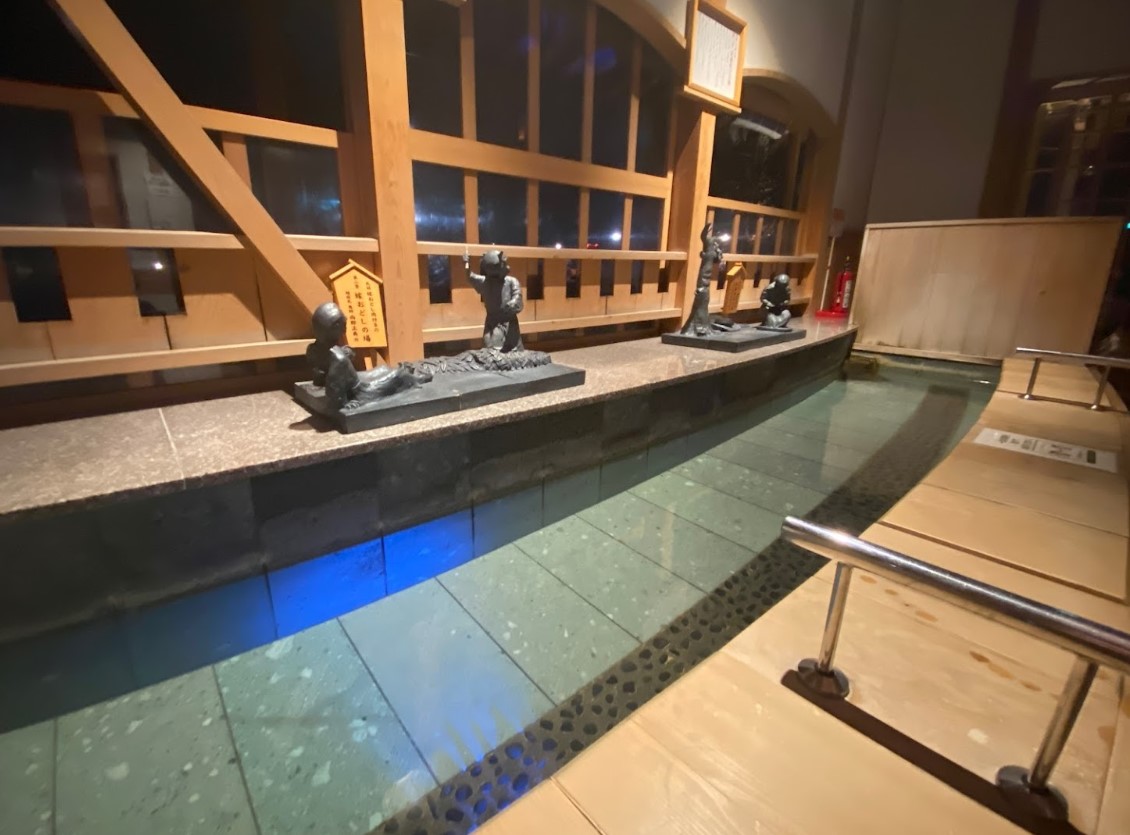 [言い伝え・概要] 現在では採掘されていない福井県産の笏谷石(しゃくだにいし)をふんだんに使用した、総ひのき造りの北陸一上質な足湯。