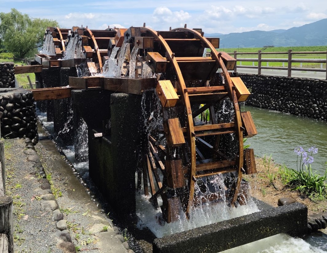 | [言い伝え・概要] | 筑後川の水を堀川用水に取水するために、およそ230年前自動回転式の重連水車が設置され、日本最古の実動する水車として、また夏の風物詩として全国でも有名となっている「朝倉の揚水車群」は、平成2年に「堀川用水」と共に国の史跡に指定されている。