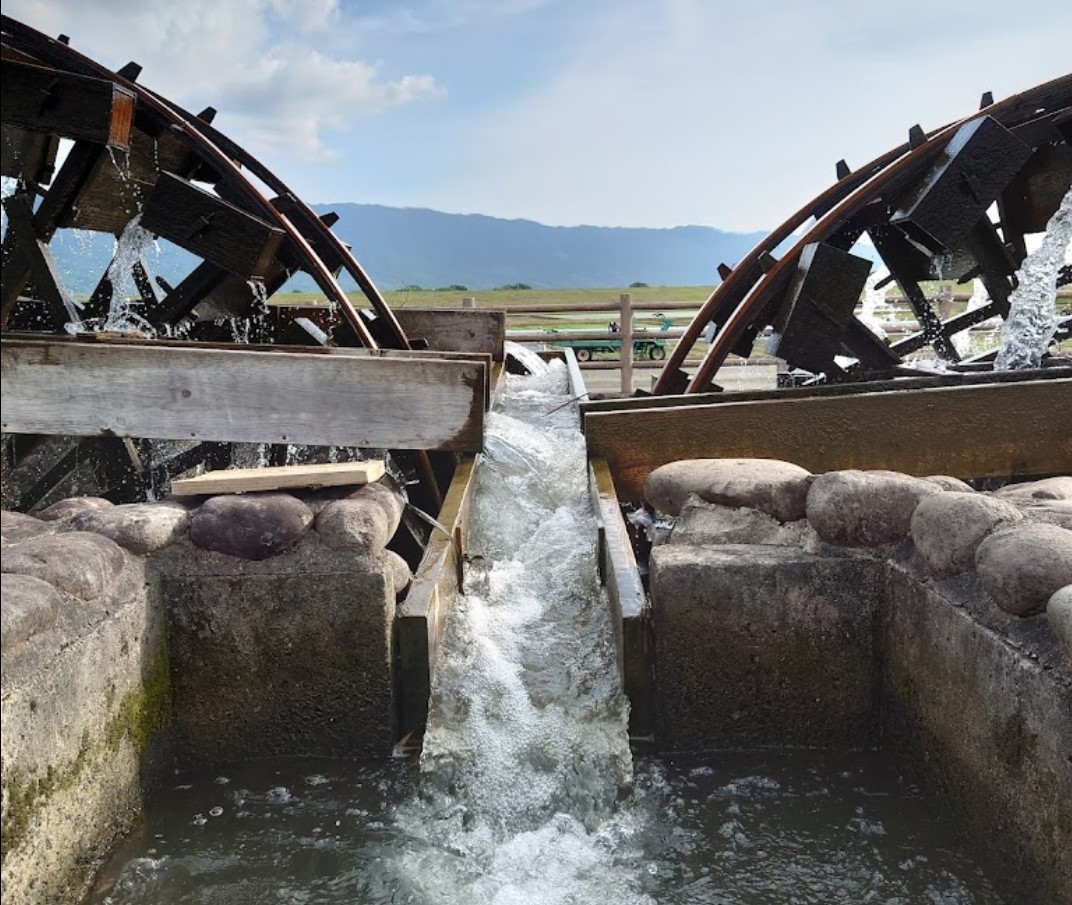 菱野の「三連水車」・三島の「二連水車」・久重の「二連水車」の7基を合わせて「朝倉の揚水車群」と呼ばれ、かんがい面積は、合計35haに及ぶ。 例年6月17日から10月中旬の期間のみ稼働。 近隣の「三連水車の里あさくら」は、特産品として名高い博多万能ねぎをはじめ、朝倉産野菜・果物・地元の特産品・惣菜などを多く取り揃えている物産館で、営業時間は、8時~17時半。 |