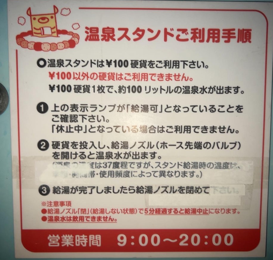 | [言い伝え・概要] | 天然温泉をご家庭でも楽しんでいただける、便利な温泉水販売所です!