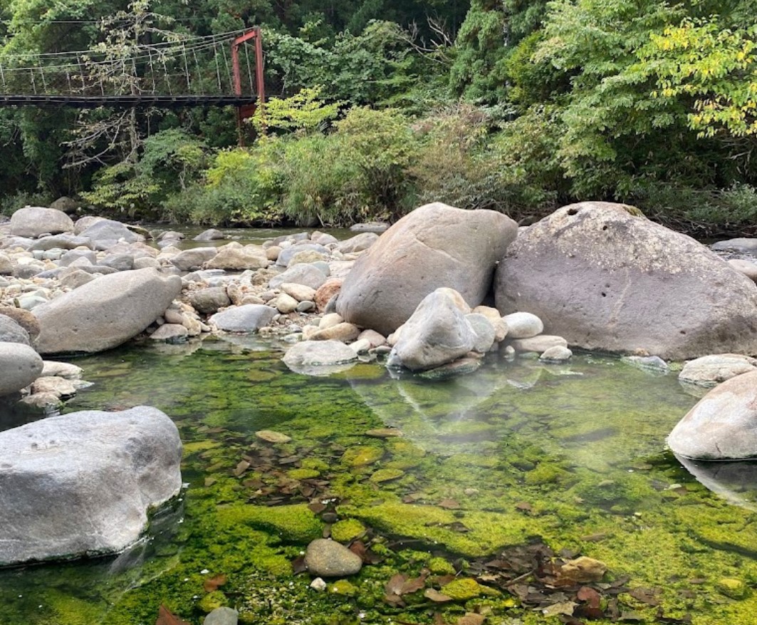 水中の石には藻が生えているため、滑らないように注意が必要。