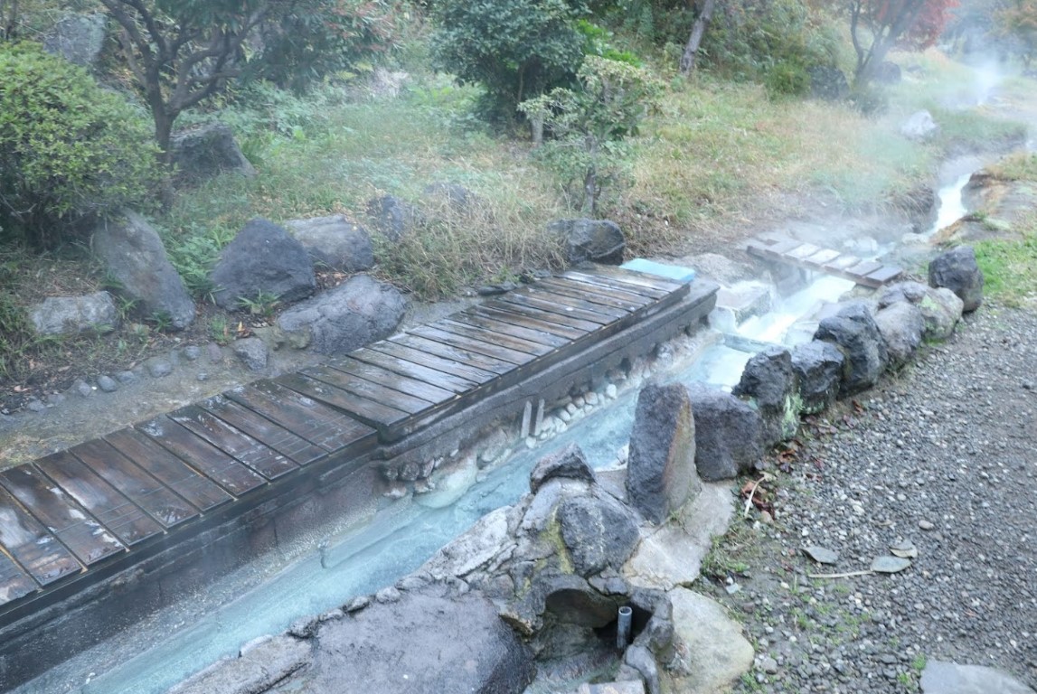 鶴見霊園を抜けたところにあり、 付近からは別府湾を望むことが出来る。 足湯としても楽しめるようにベンチのような作りになっている箇所があり、横にある建物は、有志の方々による手作りで心がこもっている。 夜間や女性のみでの立ち入りは危険との看板が出ているので、男女での入浴を推奨。 |
