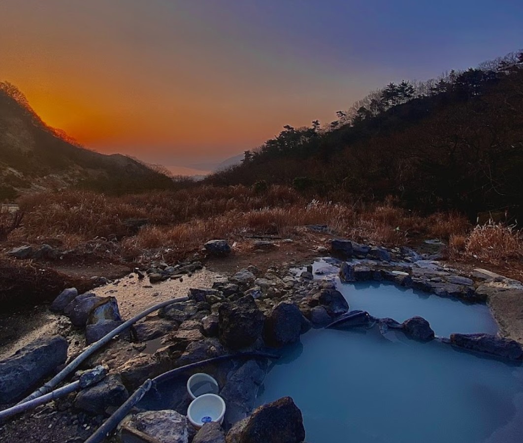 露天風呂の湯舟にはパイプが2本引かれて、温泉と沢水で温度調節している。 三秘湯の中で最も見晴らしがよく、山間から別府湾を望むことが出来、昼間の青い海、夕焼けに染まる時間、街の明かりが散りばめられる夜間、それぞれに趣がある。 こちらの情報によれば、地元の人々は卵を持って、岩間にある熱い温泉に10分ほど卵をつけて温泉卵にしているとのこと。 車で行ける突き当りの箇所に、立ち入り禁止の看板があるので、要確認。 夜間や女性のみでの立ち入りは危険。 |