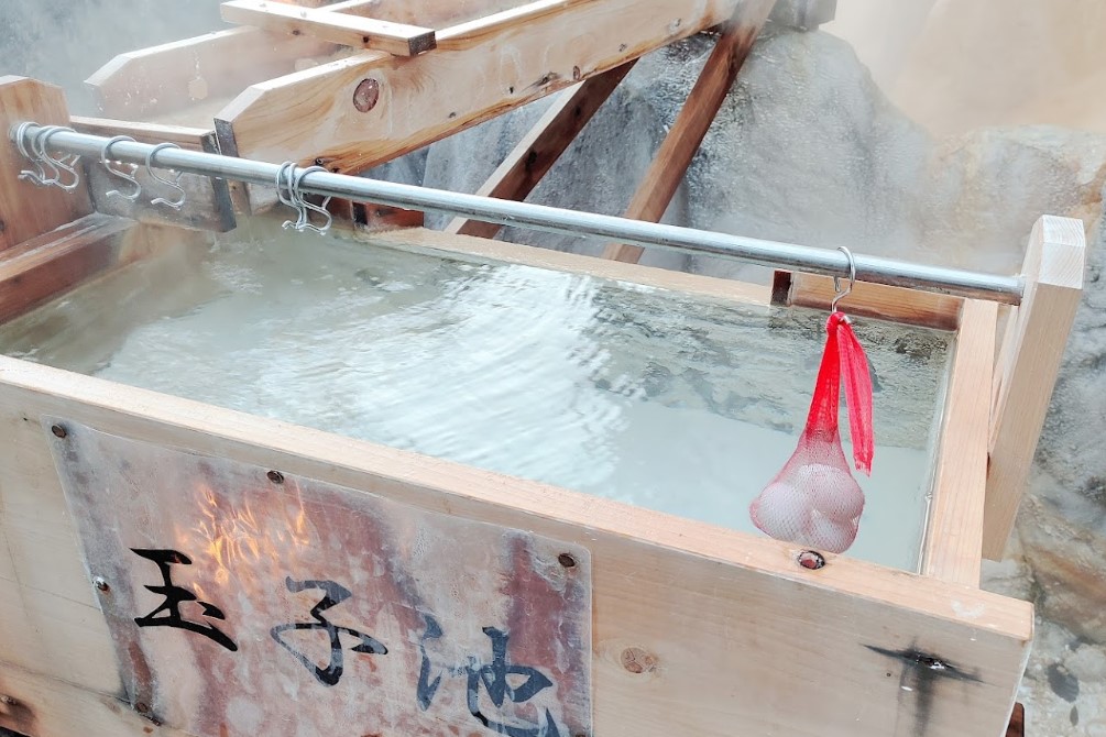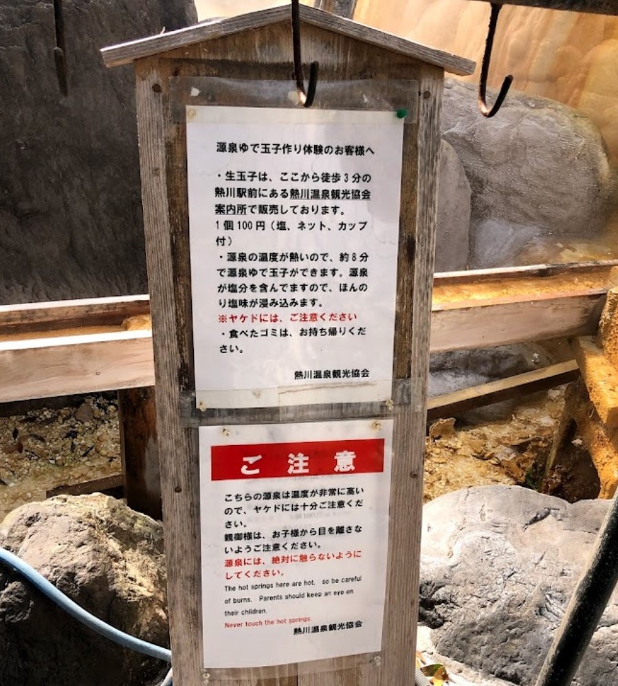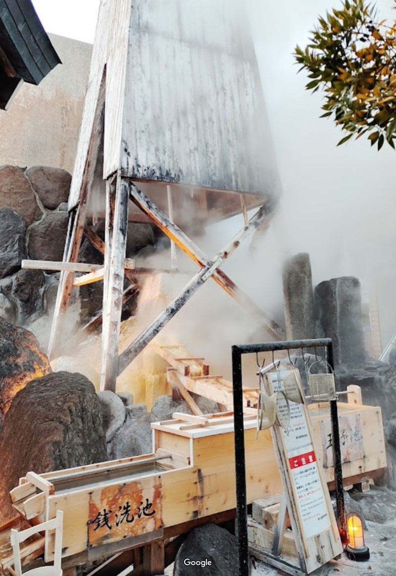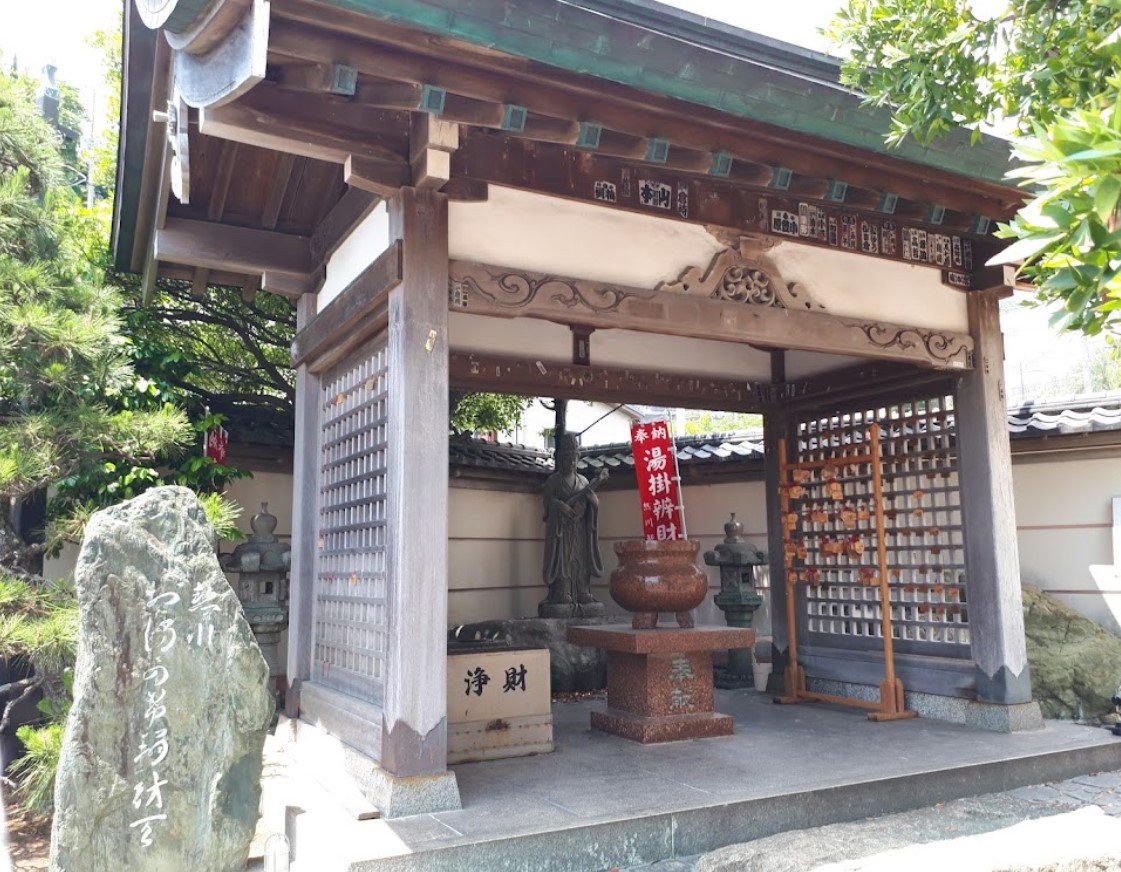 尊像にお湯をかけて、願掛けをすると願いが叶うとされる。 また、櫓の下の左手・銭洗池でお金を洗うと、お金が浄化されて金運がアップするという言い伝えがある。 右手の玉子池では温泉卵を作ることができ、温玉セットも販売されている。