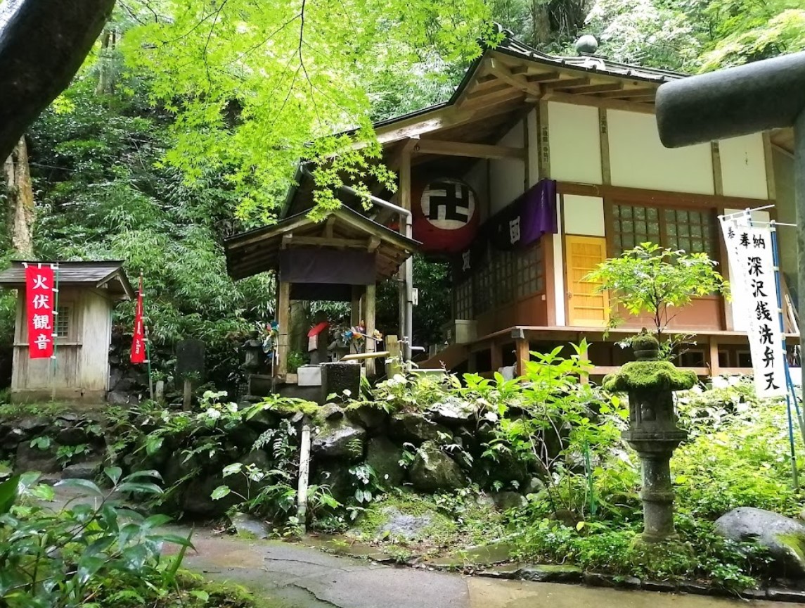 大正時代、塔之沢温泉に宿泊していた実業家の夢枕に白蛇が現れ、大正15年に清らかな水が流れる場所に社を建ててお祀りしたのが起源とされる。 「弁天癒水(べんてんいやしのみず)」と呼ばれる境内の水でお金を洗うと何倍にも増えて金運向上のご利益があると、経済界や商人の方々からの信仰が篤い。 清らかな気持ちで弁天様にお参りし、境内に用意されているひしゃくとザルでお金を洗うのが習わしとなっている。 毎年5月11日には例祭が行われる。 上りホーム売店ではご利益あると評判のだるまのほか、お札なども販売している。 営業時間 時間指定なし。散策自由 定休日 無休 料金 無料 駐車場 無 |