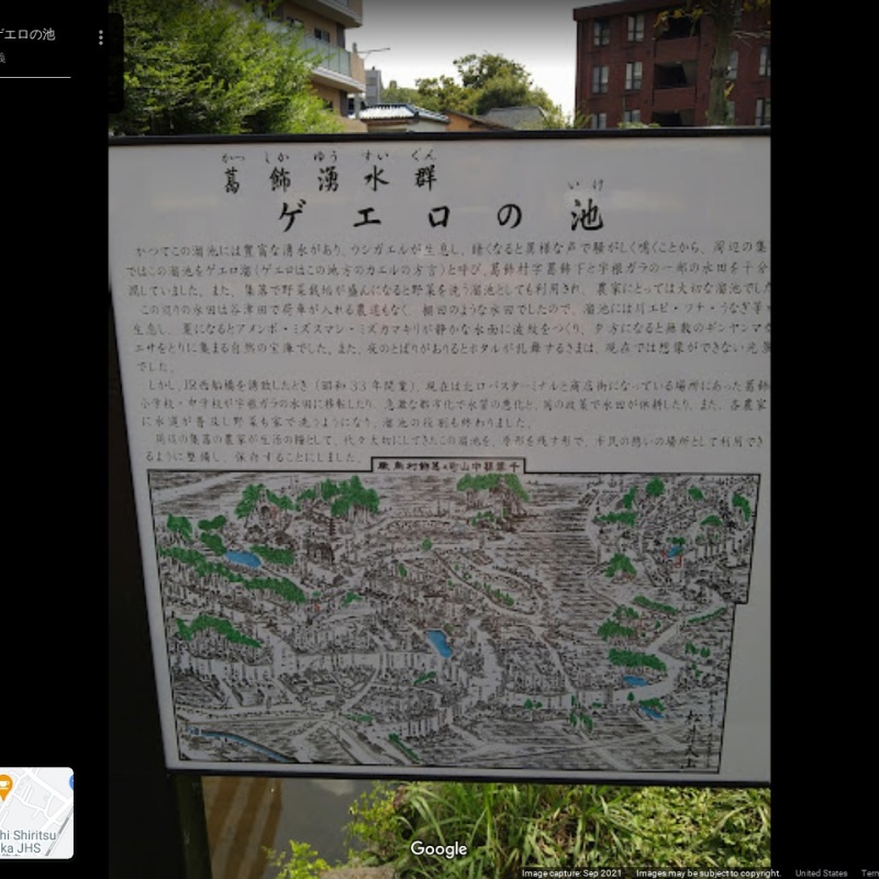 【ゲエロの池】(千葉県の湧水)船橋市印内 ウシガエルのゲエロ溜を整備してできた葛飾湧水群の池 [湧水の名称] ゲエロの池(げえろのいけ) [場所] 千葉県船橋市印内1丁目9−25 [言い伝え・概要] 葛飾湧水群(かつては農業利用、暗くなるとウシガエルが鳴いていたことからカエルの方言でゲエロの池と呼ばれる)中高層住宅、戸建て住宅、公園、駐車場などに囲まれている。 [保全活動] 公園等清掃委託契約により印内町会が日常の維持管理を実施 [Google クチコミ] こちら 出典 環境省ホームページ お気に入りに追加※自然の湧水は煮沸して飲用されるとより安全です。※水辺は水難や危険生物に十分気を付けてください。 Click to share on X (新しいウィンドウで開きます) X このエントリーをLINEで送る (新しいウィンドウで開きます) LINEに送る Facebook で共有するにはクリックしてください (新しいウィンドウで開きます) Facebook このエントリーをはてなブックマークに追加 (新しいウィンドウで開きます) はてなブックマーク (自然)湧水池 関東 | 千葉県 | 船橋市 投稿日: 2021年3月18日2023年6月20日 投稿者: Sumai事務局