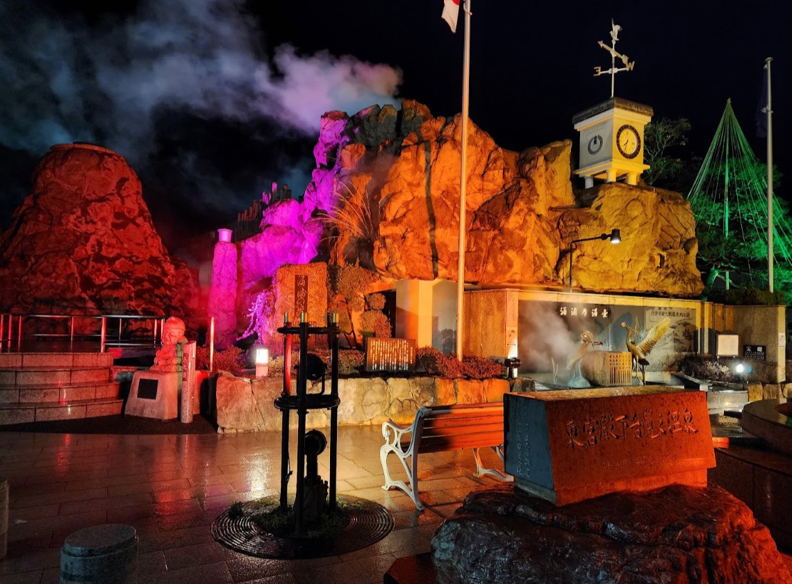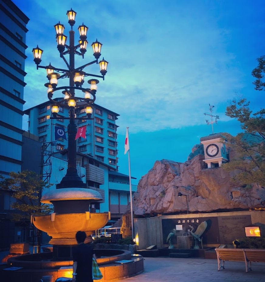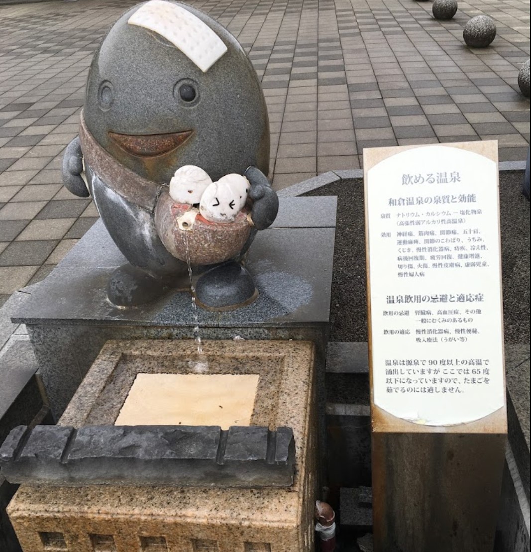 【湯元の広場】(石川県の水場)七尾市和倉町 ひときわ大きなガス灯が目印 飲泉所・温泉たまご施設がある憩いの広場