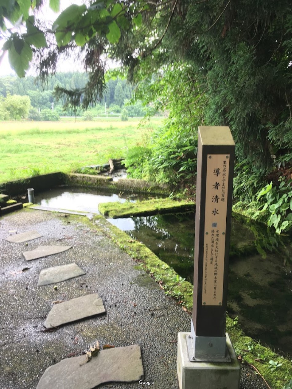 【導者清水】(山形県の湧水)北村山郡大石田町横山 最上川の河岸段丘にある 山椒魚やヨコエビも生息する 極めて水質の良い湧水
