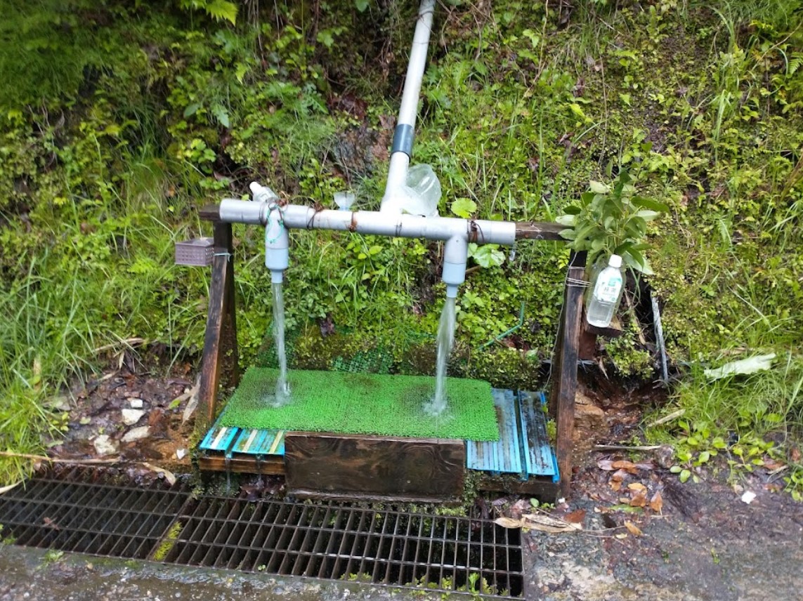 【足込の湧き水】(愛知県の湧水)北設楽郡東栄町足込 街中から足込川沿いを車で3分 森林ドライブの給水所