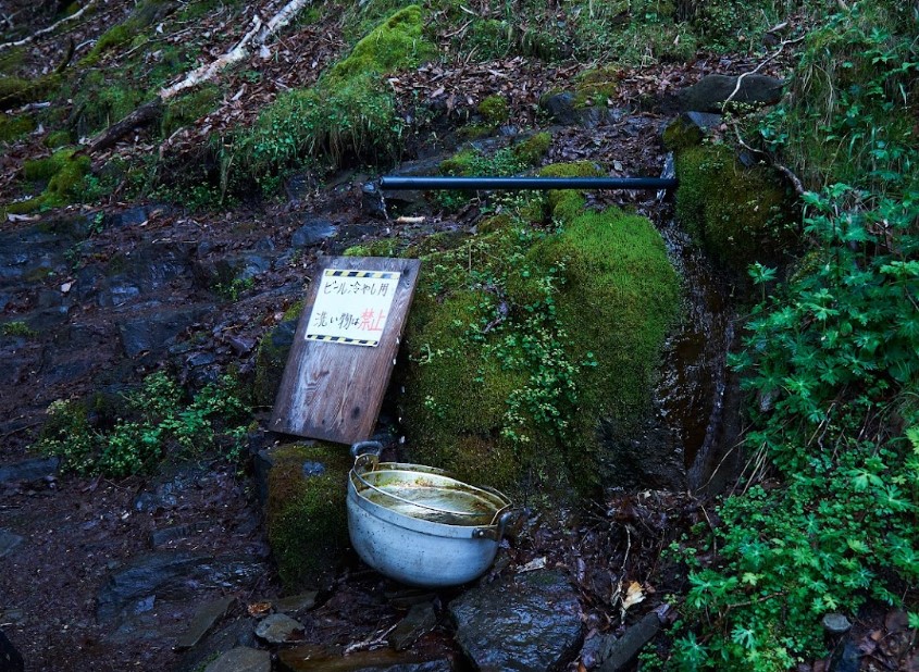 水場では、キャンプ泊の利用者が飲めるようにタンクが設置されていて、柔らかく美味しい水と評判。