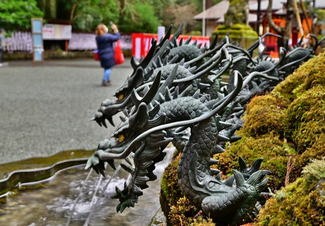 【龍神水舎】(神奈川県の水汲み場)足柄下郡箱根町元箱根 九頭龍大神が祀られる箱根神社境内で 九つの龍口から御神水が注がれる水舎