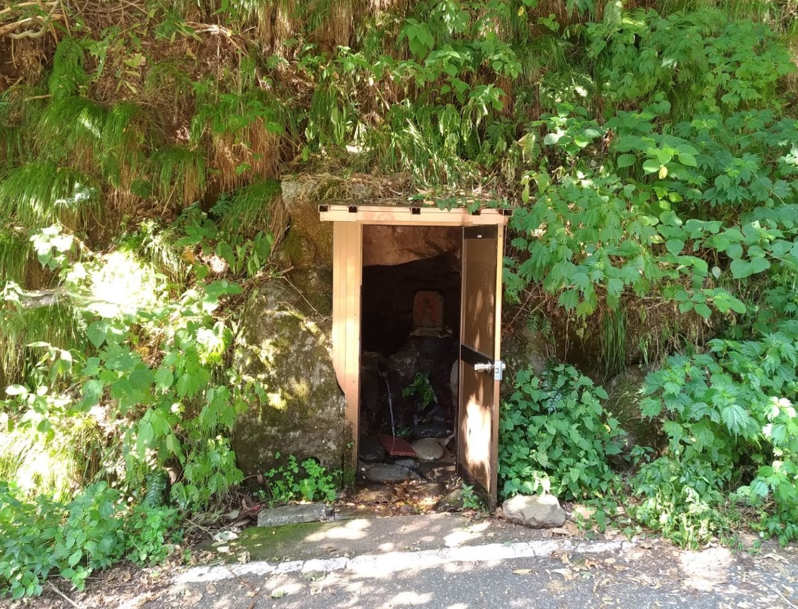 【石堂の水】(福井県の湧水)越前市西河内町 小さな洞穴の岩間から湧き出る 不老長寿の名水