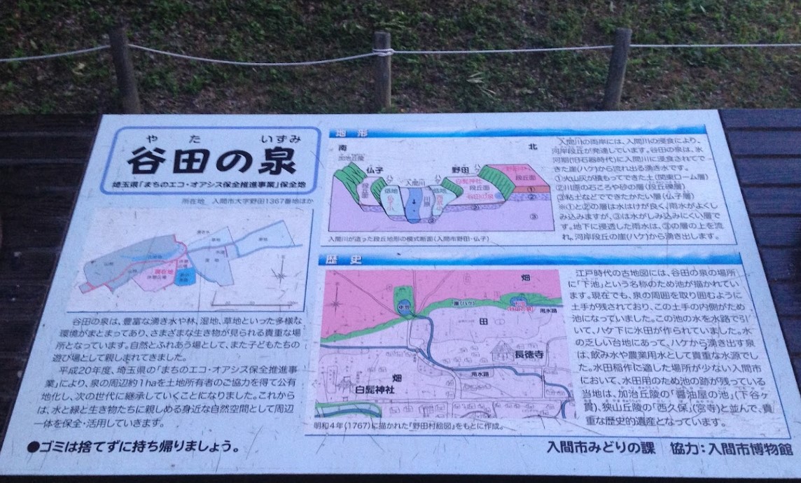 【谷田の泉】(埼玉県の湧水)入間市野田 水と緑と生き物たちが集う 河岸段丘にある憩いの泉 [湧水の名称] 谷田の泉(やたのいずみ) [場所] 埼玉県入間市野田 [言い伝え・概要] 入間川の河岸段丘のハケの森と豊富な湧水。 [保全活動] 公有地化することによって、保全活動を行っている。 また、市民団体による維持・保全活動も行われている。 [Google クチコミ] こちら 出典 環境省ホームページ お気に入りに追加※自然の湧水は煮沸して飲用されるとより安全です。※水辺は水難や危険生物に十分気を付けてください。 Click to share on X (新しいウィンドウで開きます) X このエントリーをLINEで送る (新しいウィンドウで開きます) LINEに送る Facebook で共有するにはクリックしてください (新しいウィンドウで開きます) Facebook このエントリーをはてなブックマークに追加 (新しいウィンドウで開きます) はてなブックマーク 入間市 投稿日: 2021年3月19日2023年9月1日 投稿者: Sumai事務局