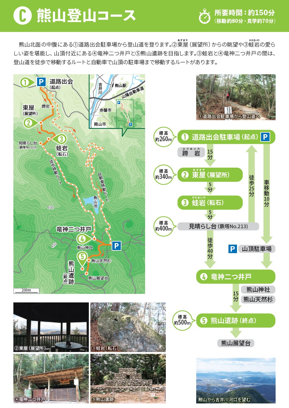 【竜神二つ井戸】(岡山県の湧水)赤磐市奥吉原 熊山山頂付近にある 登山者の喉を潤す雄竜・雌竜の二つ井戸 [名称] 竜神二つ井戸 [場所] 岡山県赤磐市奥吉原 [言い伝え・概要] 熊山山頂近くにある湧水で、東屋の下に雄竜(おんりゅう)と雌竜(めんりゅう)の二つの井戸がある。登山者が水分補給で口にすることが多い美味しい水。 山頂駐車場から少し歩いた所にあり、途中に熊山神社や熊山天然杉を通って山頂までは徒歩15分。 [保全活動] [Google クチコミ] こちら 出典 赤磐市(PDF) お気に入りに追加※自然の湧水は煮沸して飲用されるとより安全です。※水辺は水難や危険生物に十分気を付けてください。 Click to share on X (新しいウィンドウで開きます) X このエントリーをLINEで送る (新しいウィンドウで開きます) LINEに送る Facebook で共有するにはクリックしてください (新しいウィンドウで開きます) Facebook このエントリーをはてなブックマークに追加 (新しいウィンドウで開きます) はてなブックマーク (自然)登山 岡山県 | 中国 | 赤磐市 投稿日: 2024年2月3日2024年2月3日 投稿者: Sumai事務局