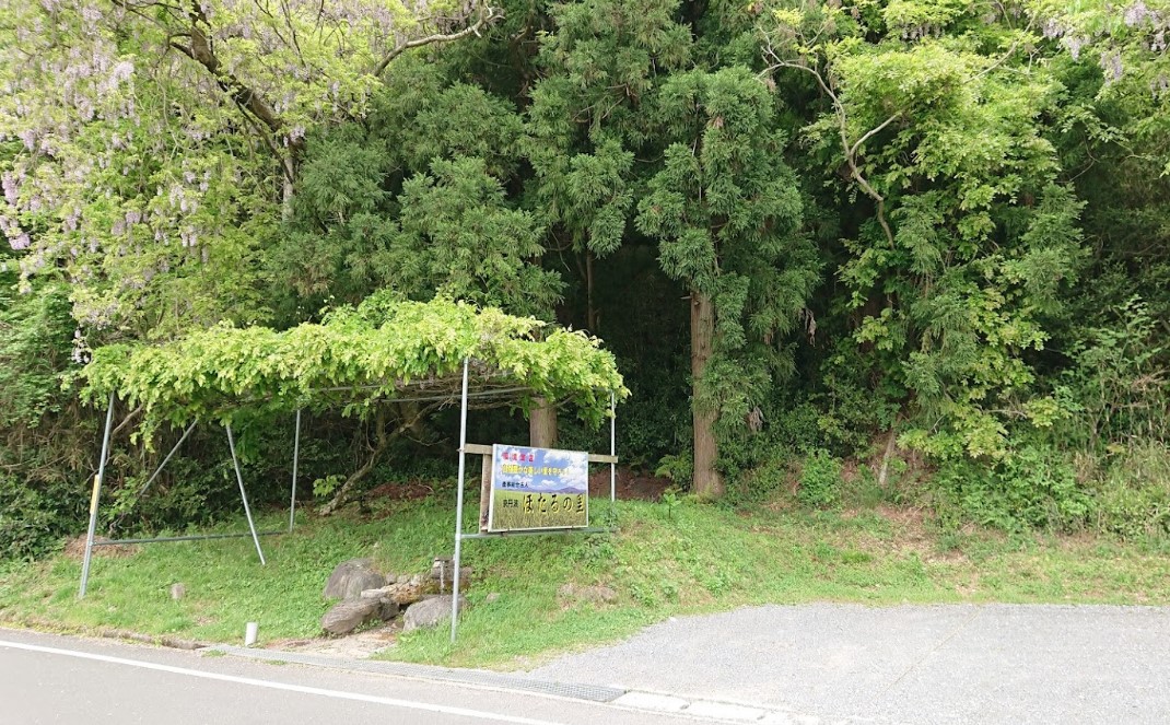 横に車を止めるスペースがあり、自然豊かな美しい里・京丹波「ほたるの里」の看板が掲げられていている。