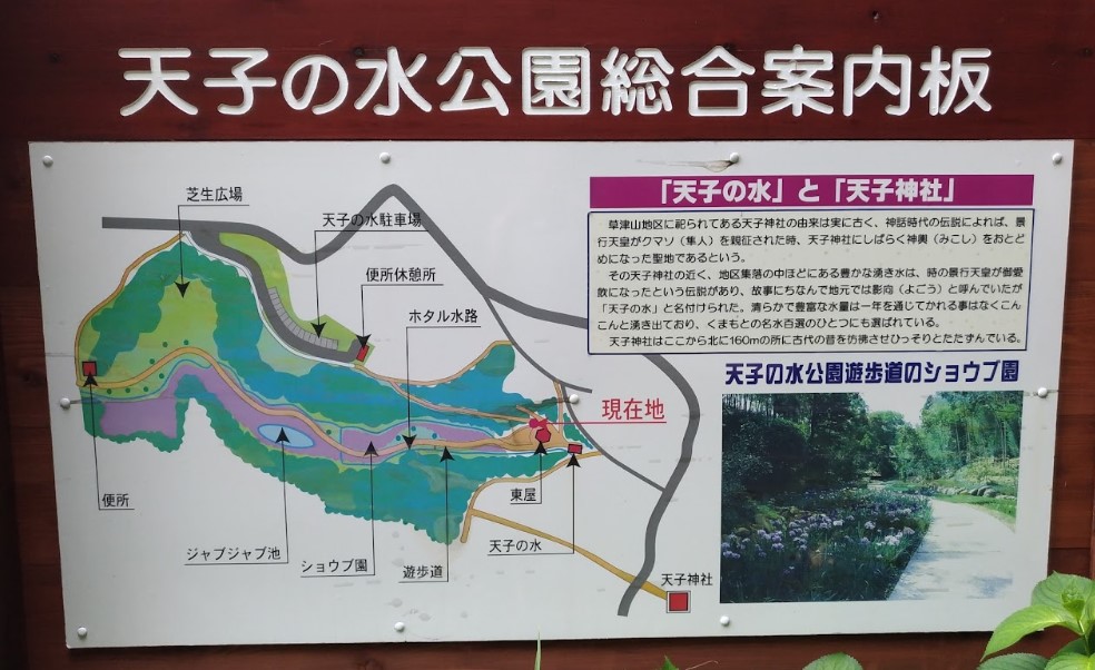 | [言い伝え・概要] | 熊本名水百選にもなっている湧水公園。5月下旬から6月上旬にかけて、3万株の菖蒲が見頃を迎えます。6月第1日曜日には『花菖蒲まつり』も開催され、多くの見物客で賑わいます。