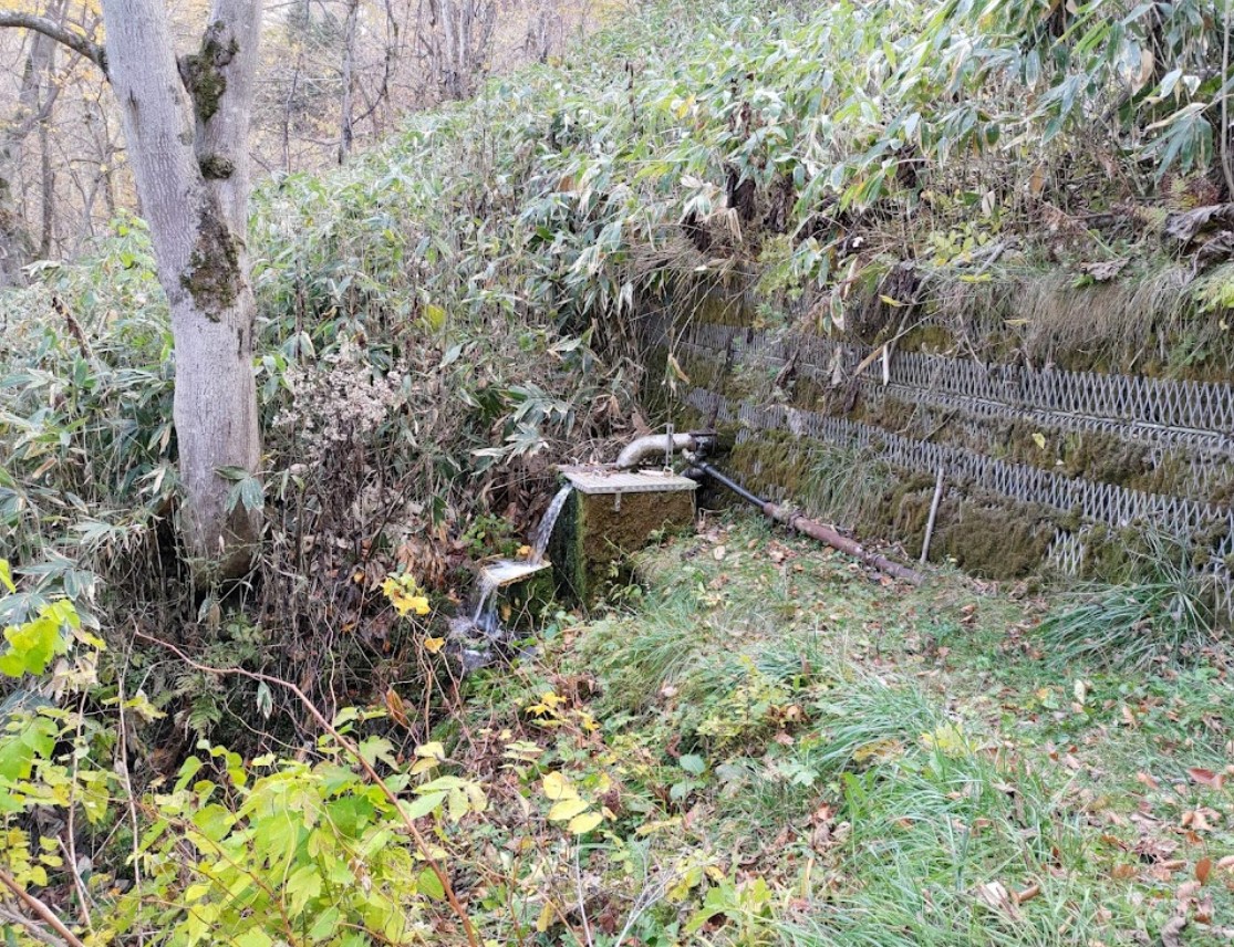 【福山の沢湧水】(北海道の湧水)虻田郡喜茂別町尻別 地域の水源に利用されている 尻別岳山麓の湧水