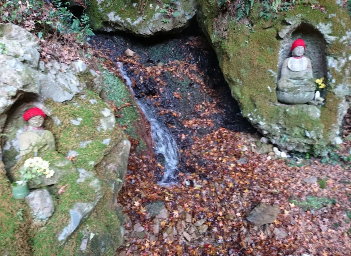 岩石の深い底から湧き出ていて、水質が特に清冷で地下の人たちは霊験あらたかな水として霊泉と呼んでいる。 取水口の上の方には湧き口があり、石仏が祀られている。 |