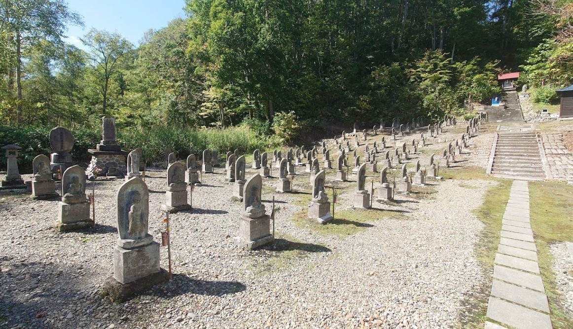 【夫婦山霊水】(北海道の湧水)北海道樺戸郡新十津川町士寸 数多くの石仏が見守る 階段を登った先にある霊水