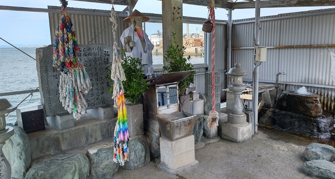 【弘法水】(愛媛県の湧水)西条市樋之口 波止場の先端の海の中から湧き出る 不思議な清水 [名称] 弘法水(こうぼうみず) [場所] 愛媛県西条市樋之口456−12 [言い伝え・概要] 港の波止場の先端で湧き出る清水。 本陣川の河口付近の海底を水源としている。 弘法大師の杖によって地下水が噴出したとされている。 [保全活動] [Google クチコミ] こちら お気に入りに追加※自然の湧水は煮沸して飲用されるとより安全です。※水辺は水難や危険生物に十分気を付けてください。 Click to share on X (新しいウィンドウで開きます) X このエントリーをLINEで送る (新しいウィンドウで開きます) LINEに送る Facebook で共有するにはクリックしてください (新しいウィンドウで開きます) Facebook このエントリーをはてなブックマークに追加 (新しいウィンドウで開きます) はてなブックマーク (人物)弘法大師 愛媛県 | 四国 | 西条市 投稿日: 2024年2月29日2024年2月29日 投稿者: Sumai事務局